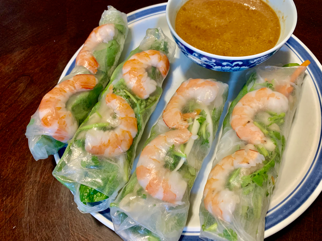 Recently, I served summer rolls at a family gathering. It was a hit. Everyone loved it. I have just made it again for my family. You can view the video Let’s Make Summer Rolls for step-by-step instructions to make your own summer rolls. You can substitute ingredients on my video with your favorite items for your rolls. For example, the rolls I made for the party, I used crisp baby lettuce and mint while in this video I used spinach and basil instead. You do not need to follow exactly as I did for my summer rolls. You can use what you have at home and make some adjustments to make your unique rolls. The same goes for the dipping sauce, which you can add or modify the amount of each ingredient to meet your taste. I call the sauce chunky creamy peanut butter sauce.